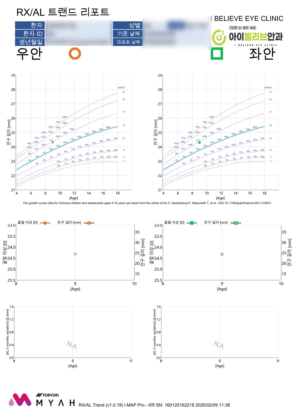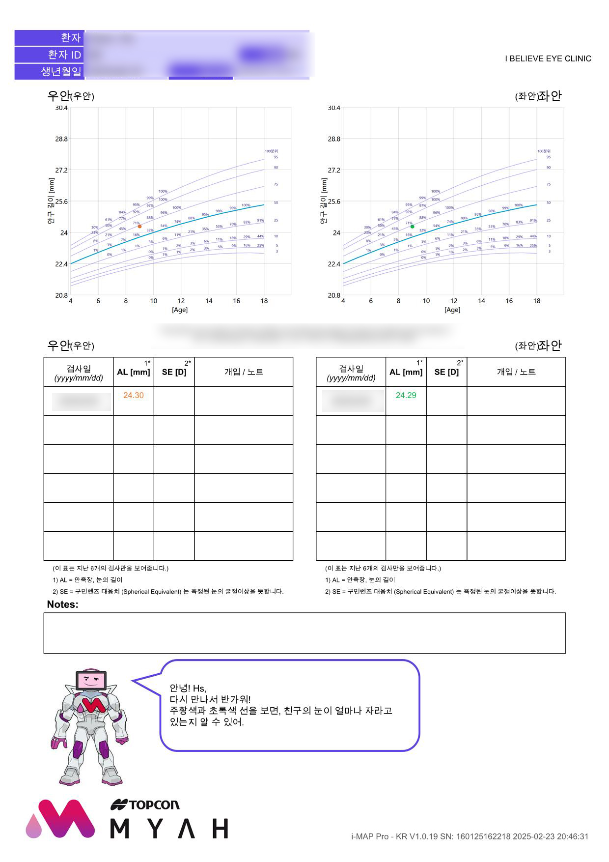 근시 억제 치료 효과를 정량적으로 비교 가능합니다.