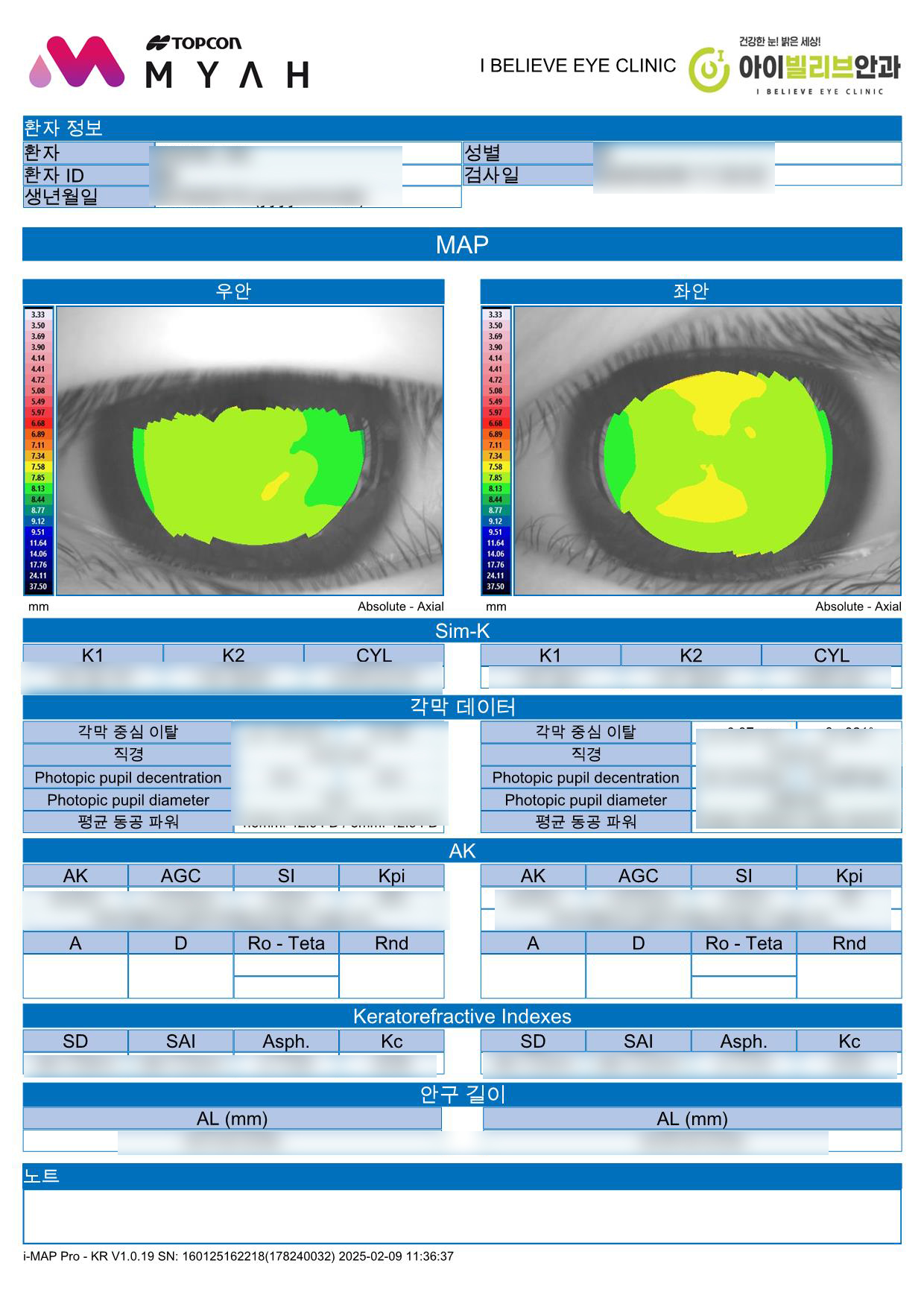 각막 곡률과 눈의 길이를 기반으로 정밀한 렌즈 설계가 가능합니다.